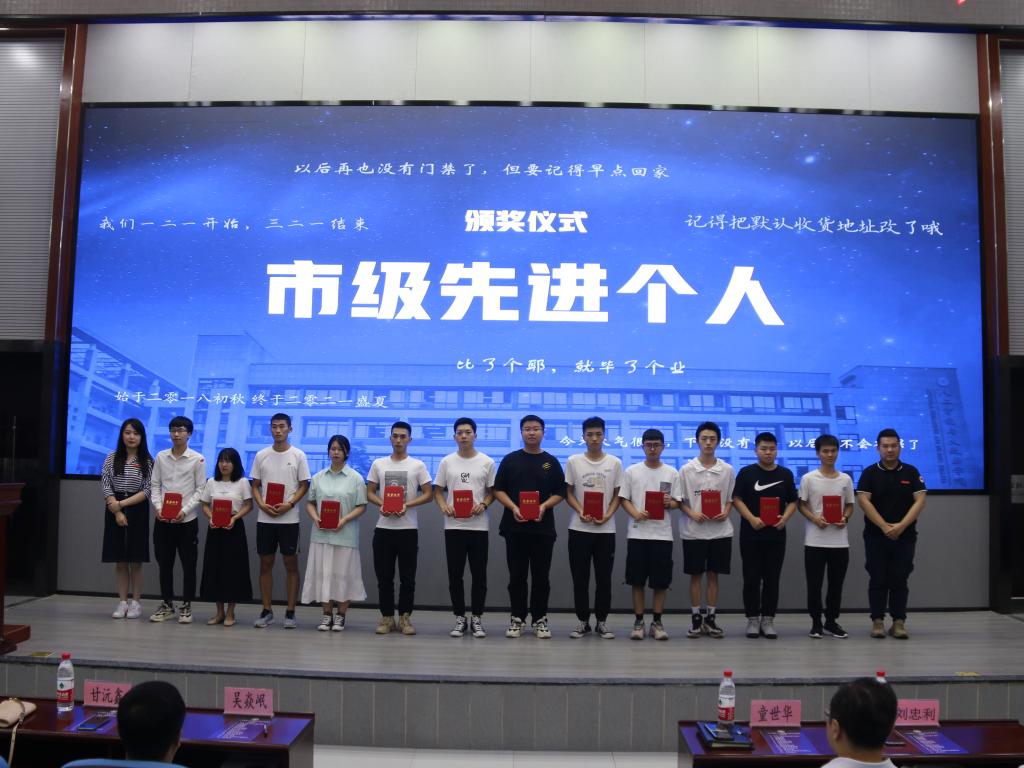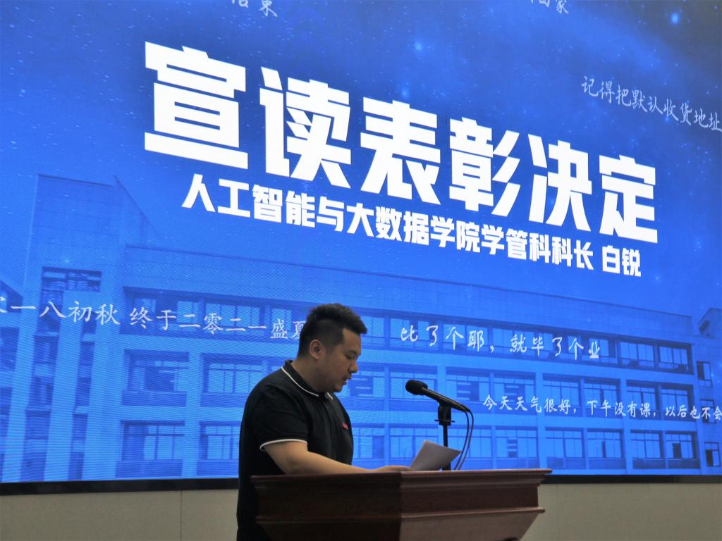 接着,白锐老师宣读了2021年市级先进个人、市级优秀毕业生、校级优秀、优良毕业生暨2021年“智数之星”表彰决定。领导和老师为获奖代表颁奖。