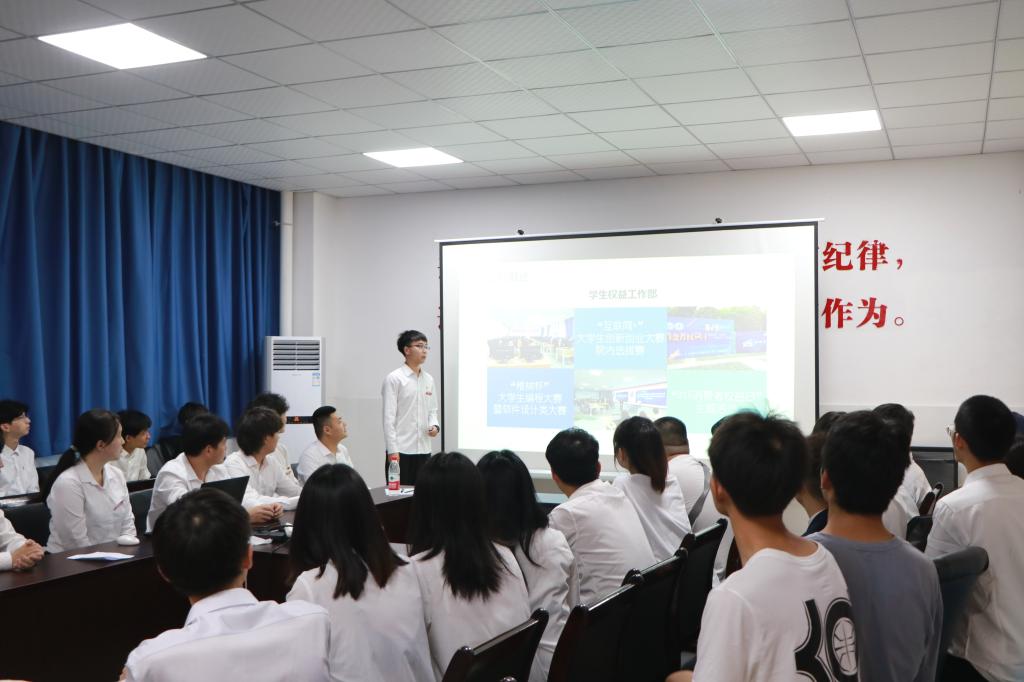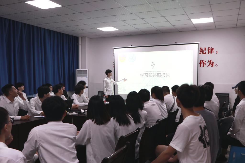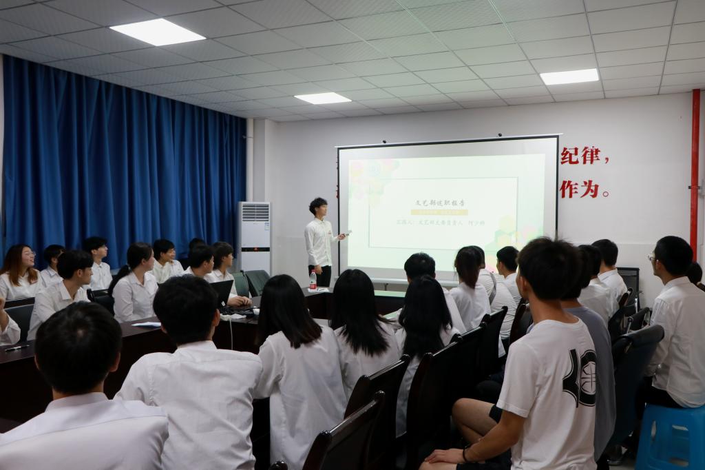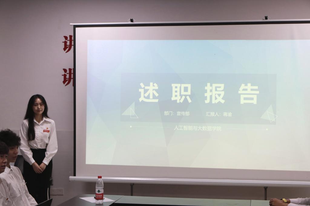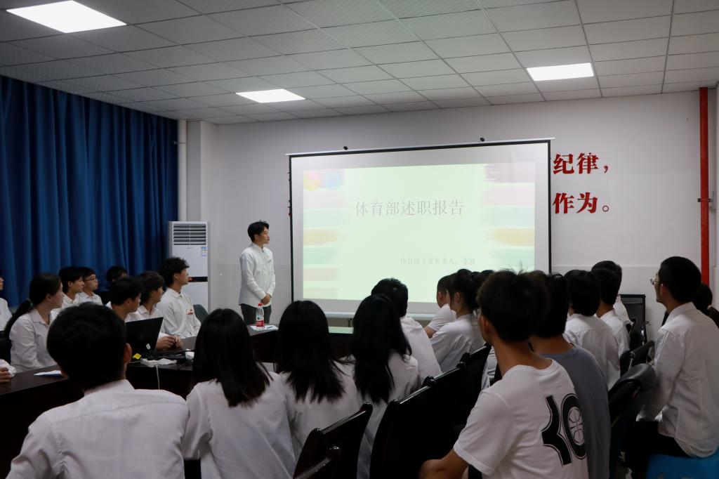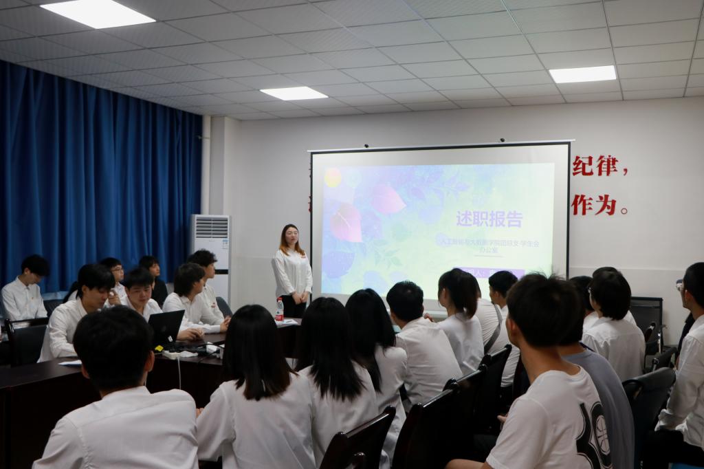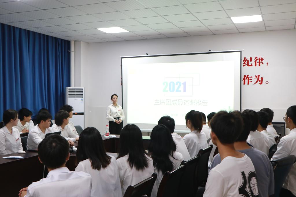 接下来由团总支·员工会组织部、宣传部、办公室、学习部、生活部、员工权益工作部、文艺部、体育部、心理部共10个团学部门的主要负责人结合部门特色,就部门建设、部门工作取得的成绩、存在的不足和对未来的展望计划依次以书面总结、ppt展示的方式进行了述职。