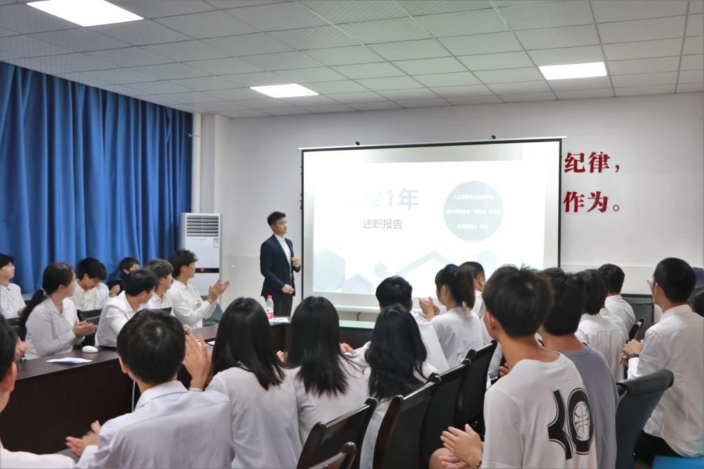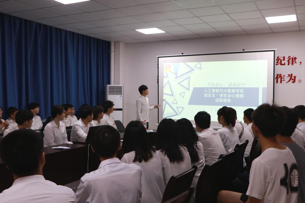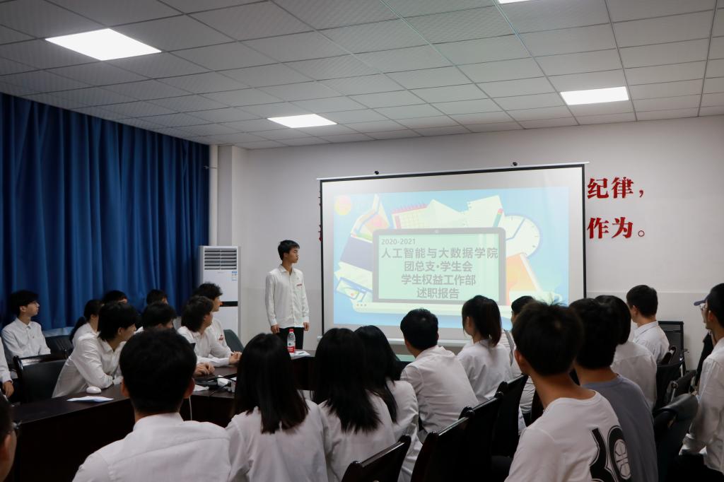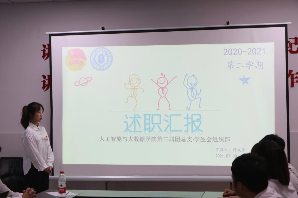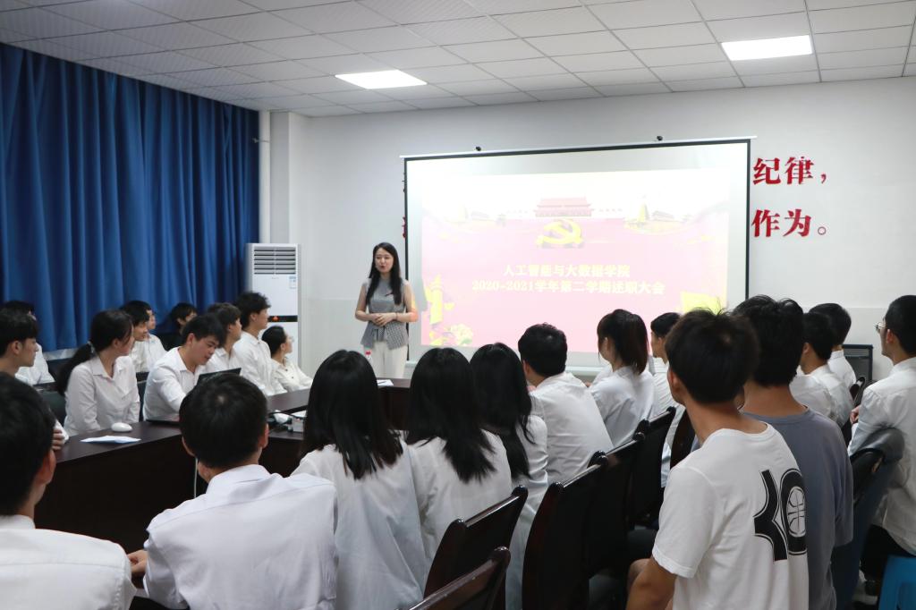 为使学院师生了解团总支·员工会本学期各部门整体工作概况,增强团总支·员工会各成员的合作交流,加强组织建设,人工智能与数据学院于7月9日在14栋108室举行人工智能与数据学院团总支·员工会2020—2021学年第二学期述职评议会。学院学管科科长白锐、团总支负责人王菡、团总支·员工会负责人、部门代表及班级代表参加了本次会议。
