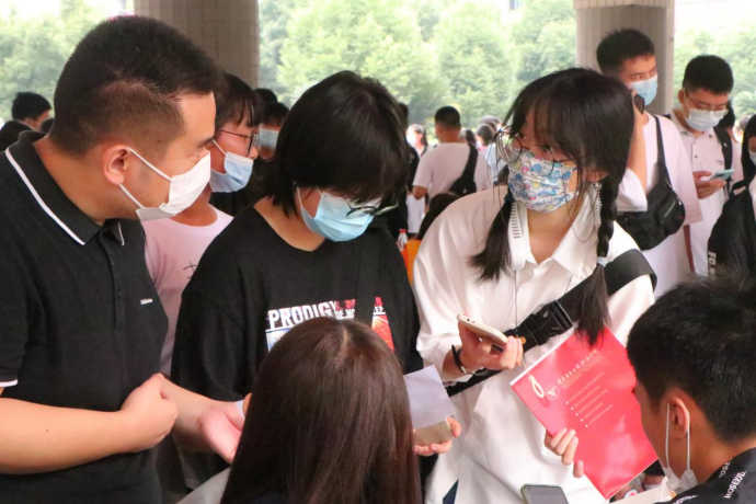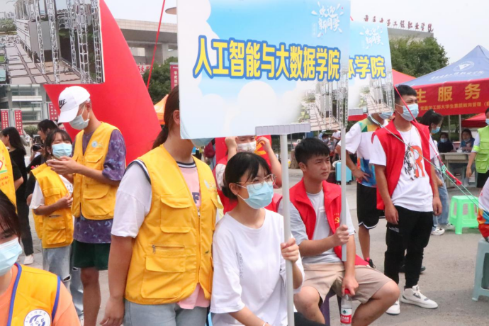 除了老师和团学干部之外,学院的向日葵青年志愿者服务队也承载了比较繁重的任务,大家相互配合,通力合作,将灿烂的笑容留给新同学,拭去汗水,继续奔走在路上。