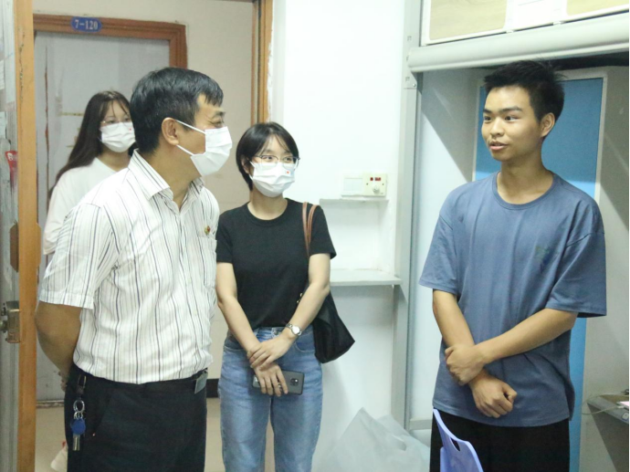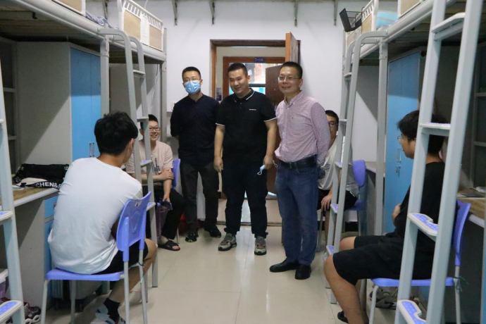 为进一步掌握新生入学情况,关心新生住宿环境,同时深入宣传落实防诈反诈工作,9月12日下午,公司党总支书记吴焱岷、党总支副书记刘宏宇、学管科科长白锐、团总支负责人王菡、党支部书记邓剑勋、网络空间安全系主任鲁先志、软件工程系主任黎娅及全体2021级新生辅导员共同走访了新生宿舍,看望新同学。