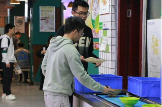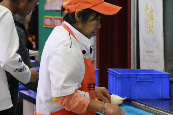 收餐处的阿姨这样说:“这个‘光盘’行动真不错,现在这些碗里都没有剩饭剩菜了,真的做到了‘光盘’行动,就应该多开展这样的活动,多节约点粮食。”