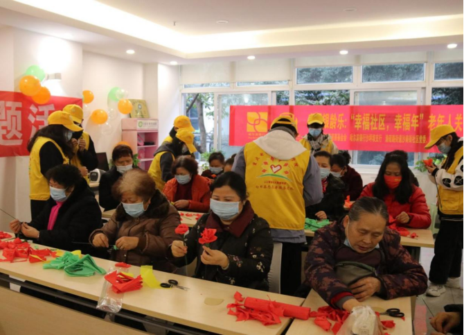 在即将到来的新年里为了让老年人们收获新年的喜悦和温暖,让他们感受到快乐和幸福,帮助他们锻炼脑手协作能力,减缓各项身体机能的退化,搭建同辈群体互助平台,努力实现互助共赢,为此,“向日葵”青年志愿者服务支队于2022年1月13日在沙南街社区党群服务中心与社区社工们开展了“幸福社区,幸福年”关爱老年人主题活动。