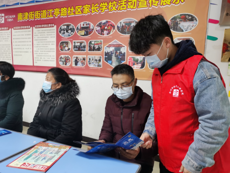 志愿者为居民进行防诈骗的宣传,为他们讲解新型的诈骗手段
