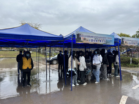 图为志愿者接送考生