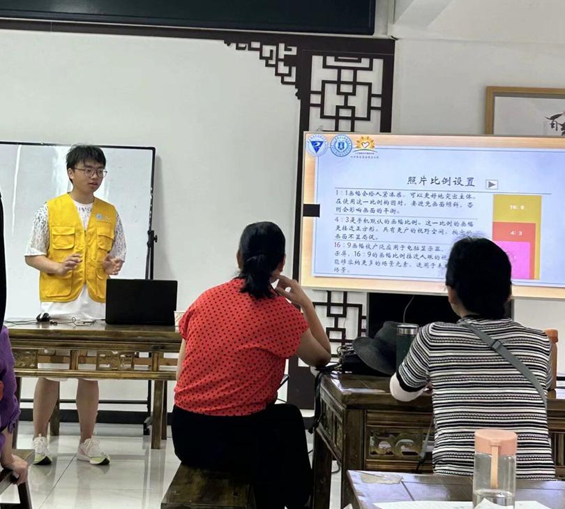 俗话说得好,人要“活到老,学到老”,可见学习无论对哪一个年龄段的人都是非常重要的。5月6日,j9九游会“向日葵”青年志愿者服务支队继续前往联芳街道双朝门社区开展老年科技大学志愿服务。