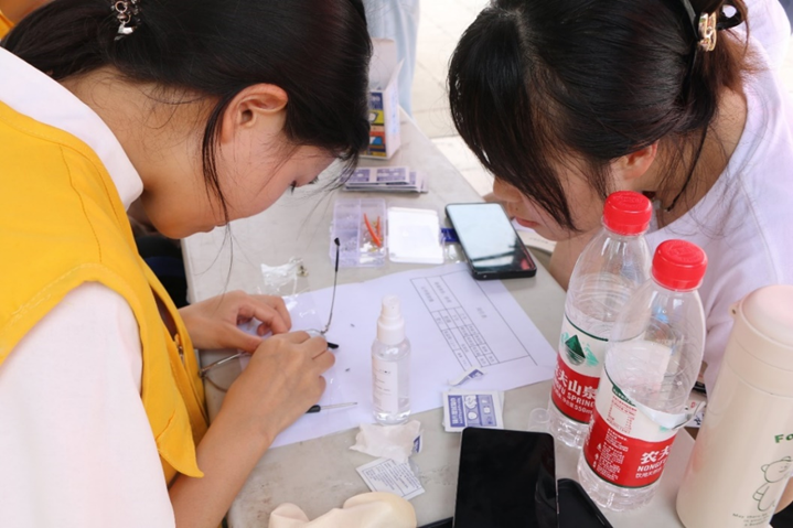 一边眼镜护理服务,志愿者细心耐心地为同学们提供镜片清洗、擦拭以及更换眼镜鼻托,让眼镜鼻托焕然一新。