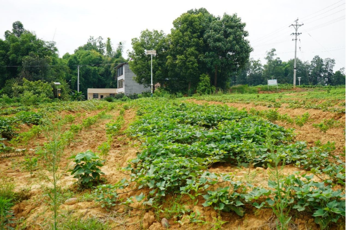 图为大豆,红薯和柑橘的套种土地 周彬摄