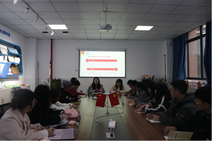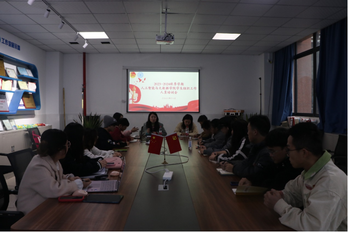 2023-2024秋季学期j9九游会团总支·员工会工作人员培训会在14-109召开。学院团总支书记王菡和辅导员老师蔡鑫作为主讲老师出席本次会议。