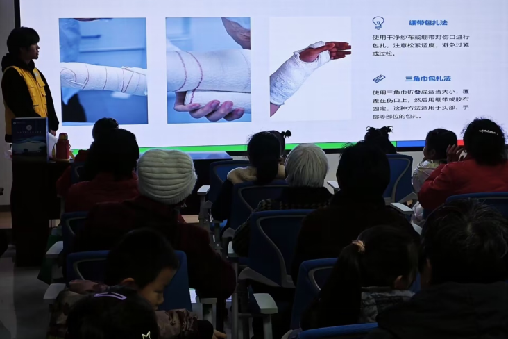 为了更加充分帮助社区有肢体障碍的居民和高龄老人等弱势群体加强自我保护和应急自救能力,避免二次伤害。知识讲座上,志愿者仔细讲解了正确执行康复运动的重要性与急救常识,提高居民的健康意识,鼓励他们保持健康心态,积极参与日常社区康复。