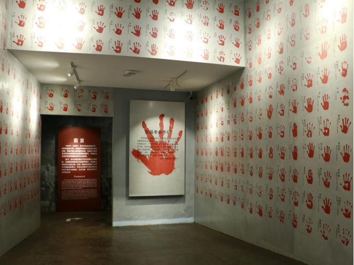 硝烟与战火虽已远去,那鲜红的手印与英魂永远铭记于同学们的心中。大家满怀敬畏地去轻轻抚摸触碰,无声地表达对先辈们的感谢与敬意。文物无声,却生动地展现了历史时空下不屈不挠的抗争;烈士有痕,老兵们的手印震撼了每一颗立志报国之心。