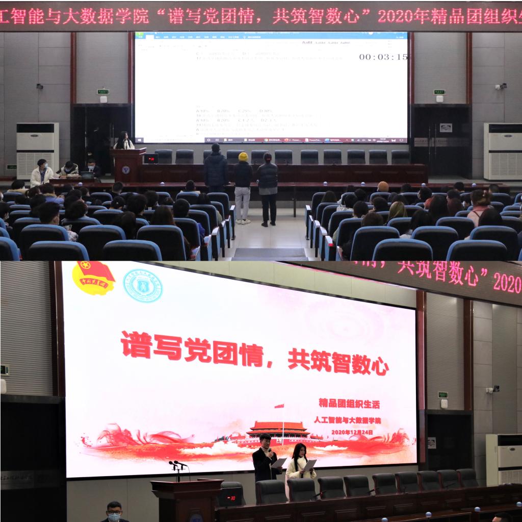 为深入开展“四史”学习教育,激发团员青年爱党、爱国热情,坚定理想信念、永葆奋斗精神,让初心薪火相传,把使命永担在肩。2020年12月24日晚18:30,j9九游会在博远厅顺利举办主题为“谱写党团情 共筑智数心”学“四史”知识竞赛暨精品团组织生活。公司党总支书记吴焱岷、党总支副书记刘宏宇、学管科负责人白锐、团总支临时负责人王菡、大一大二全体辅导员老师、校团委主席团代表,各二级学院团总支员工会代表及学院各班级代表参加本次活动。